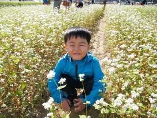 메밀꽃과 함께 이렇게 사진도 찍어보았어요. 다행히 날씨가 좋아서 꽃과 함께 하기에 딱이네요^^