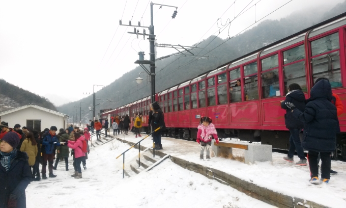 안녕하세요 부족하지만 늘 최선을 다하는 현용운 가이드 입니다. 이번20일 저는 겨울여행의 대표지인 협곡열차를 타고 떠나는 태백여행을 다녀왔습니다. ![]() ![]() 영주역에 도착한 협곡열차 입니다. 겨울을 크리스마스와 겨울을 대비해 이렇게 꽃단장을 했네요 ![]() 봉성역에서 다른열차를 피해가기위해 이렇게 잠시대기하는중에 찍었습니다. 아름답습니다. ![]() 이렇게 열차 직원분들또한 산타복장으로 일일이 손님들께 의상을제공하며 사진찍는걸 도와주시네요~^^ ![]() ![]() 저희는 드디어 분천역 산타마을에 도착했습니다. 크리스마스 분위기가 물씬 풍기는 산타마을입니다. ![]() ![]() 역사 건물 옆의 보조동에도 이렇게 내부를 장식해 놓은 모습입니다. ![]() 양원역은 오늘도 사람이 북적입니다. 아침에 안동쯤 지날때부터 눈이 보이기 시작하더니 도경계 선상에선 이렇겟 만이 쌓여있네요 ![]() 철암역에 도착한 후 저희는 곧바로 낙동강 1300리의 시작점인 황지연못을 관람하고 바로 점심식사 시간을 가졌습니다. ![]() ![]() 식사후 저희는 ![]() 하이원곤돌라를 타러왔습니다. 특히나 저는 혼자 탑승했는데 바람이 많이불어서 진짜 그네처럼 흔들렸지만 안전에 이상이 있을정도의 바람이 불 경우에만 운행을 중지한다고 하여 안심하였습니다. ![]() 마운틴탑에 와서 한컷 찍었습니다. 이미 많은 스키어와 보더들이 오셨네요~ 보는내내 부러워 데크만 부츠만 있었다면 바로 타고 내려갔을 겁니다... ![]() 마운틴탑 포토존중 하나인 전망대 뒷편입니다. 각 지역마다 떨어진 거리를 표기해 놓았네요 ![]() 저희 손님들입니다. 칼바람이 불었지만 사진과 같이 날씨가 맑아 탁 트인 시야가 가슴을 뻥 뚫어놓습니다 ![]() 참 아름다운 설경이죠? ![]() 하이원에서 시간을 보낸뒤 저희는 태백산 도립공원으로 향했습니다. 도착하고 가장 먼저 간 곳이 바로 석탄박물관 입니다. ![]() 태백지역 태백개발이 이루어진 배경부터 ![]() 증기기관도 보이는군요. 왜 증기기관모델이 박물관 중간에 위치해있는지 궁금하신 분들이 많으실 껍니다. 사실 증기기관이 18세기 영국의 탄광에 고인 물을 퍼내기 위해 먼저 사용됬다고 하네요 1712년 뉴커먼(영) 에의해 개발된 후 이후 산업혁명의 아버지 라 불리는 제임스 와트(영) 에 의해 개량되어 18~19세기 유럽산업혁명 을 이끈 원동력을 제공한 장치라고 생각하심 됩니다. ![]() 이렇게 밖을 나와보니 오늘 부터 딱! 눈썰매장이 개장했더군요. 석탄박물관에서 깨알같은 정보를 얻는다고 정신이 팔려 폐장시간에 방분해버려 사람이 없었습니다. ![]() 특이 오늘 오신분들중에 아이들과 함께하신 손님들이 많이 계셨기에 눈썰매장 은 아이들의 웃음을 자아내기에 충분했던것 같네요^^ 이렇게 도립공원 관람을 마치고 개별자유석식 후 에 철암역으로 이동하여 대구로 내려오게 되었습니다. 올겨울도 삼성여행사와 함께하세요~ |