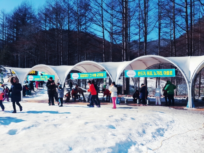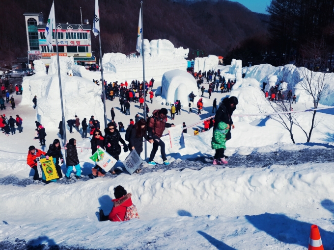안녕하세요~ 여행을 사랑하는 가이드 장은주입니다. 1월 31일에 태백산과 하이원, 황지연못을 다녀왔습니다. 이번여행은 기차여행이라 더욱 더 특별했어요^^ ![]() ![]() 이른아침 동대구역에서 무궁화호를 탑승해서 어느새 해가뜨고 창밖에 절경을 감상하고나니 어느덧 철암역에 도착했습니다. 철암역에서 버스를 타고 태백산 도립공원으로 향합니다. ![]() ![]() ![]() ![]() ![]() ![]() 눈꽃 축제장에 도착하니 여러 조각상과 더불어 여러가지 체험을 할수있는곳이 아주 많았습니다. 엄마와 아빠와 눈썰매도 타고 옛날 추억의 군것질도 할수있는 체험장이 있었습니다^^ ![]() ![]() ![]() ![]() 눈조각상 한쪽에 위치한 공연장에는 축제분위기에 맞춰 한창 공연이 펼쳐지고 있었습니다 축제에 걸맞게 많은 분들이 같이 춤을 추고 계시네요 ㅎㅎㅎㅎ ![]() ![]() ![]() 얼음 눈썰매장이 단연 인기를 끌었는데요~ 비료포대를 하나씩 들고 줄을서면 모두 이용할수있게 되었습니다. 다만, 엉덩이가 쪼~~~매 아프다능 ㅜㅜ ㅋㅋㅋㅋㅋ 줄이 많이 길기때문에 축제장에 가자마자 서둘러 줄을서는걸 추천합니다!! ![]() ![]() ![]() ![]() ![]() ![]() 다음장소인 하이원 호텔로 버스를 타고왔습니다. 하이원호텔에서 마운틴탑까지 곤도라를 이용했는데요~ 눈덮힌 하이원을 한눈에 즐길수있었습니다. 빅토리아 슬로프도 보이고 스키,보드를 타는 사람들도 가까이 보이네요~ 마운틴탑에는 하트조형물을 비롯해 스키장다운 의자도 눈낄을 끕니다.. 부산에서 오신 아버님~ 마운틴 탑에서 멋진포즈로 조형물과 한컷! 맘에 드시나요??? 이번여행에서 모두들 시간도 잘지켜주시고 너무나도 유쾌한 분들이 많아 참 즐거웠습니다^^ ![]() ![]() ![]() ![]() ![]() ![]() 마지막 코스인 황지연못에 도착했습니다. 황지자유시장에서 즐거운 식사도 하고 해가지기 전과 해가진후의 황지연못의 루미나리에~ 짜짠!! 해가 지고 나서 더욱 이쁘답니다^^ 황지연못을 마지막으로 철암역으로 이동해 다시 무궁화호를타고 동대구 역, 부산역으로 돌아왔습니다. 너무 유쾌한 기차여행이었습니당~^^ |