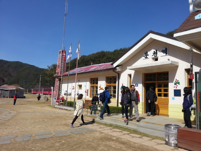 이른 새벽... 나는 가이드 갑니다............. 오늘도 태백으로 저는 여행을 갑니다.... 태백을 갈때면 저도 모르게 기차안에서 흐뭇한 미소를 짓는답니다. 왜냐면... 힐링하러가는거니깐요.... 달리는 기차안에서 바라보는 밖의 모습은 항상 회사에 갇혀있던 저에게 계절을 모르고 지나가는 저에게... 계절이 바뀌고 있다고 말해줍니다. ![]() 영주에 무궁화호를 내려서 분홍색 협곡열차로 갈아탔습니다. ![]() ![]() ![]() ![]() 분천역은 역시나 이쁘네요 ![]() ![]() ![]() ![]() ![]() 산타마을이라서 아직도 산타가 있어요... 그리고 중간에 모 음료 선전에 나올거 같은 북극곰도 있어요.. 다음 정차역은 양원역... 여기서는 먹거리가 좋죠 근데 아쉽게도 돼지껍데기는 예전보다 맛이 없어졌어요 ㅜㅜ 막걸리 맛은 변했는지 맛보고 싶었지만... 먹을수가 없는 현실... ![]() ![]() ![]() ![]() ![]() ![]() 협곡열차를 하차한 후 저희는 점심을 먹으러 갔습니다. 오랫만에 두멧길 식당에서 밥을 먹었는데요 물김치가 완전 맛있는 식당이죠 손님들도 맛있다고 칭찬을... ![]() 태백에서의 첫번째 여행지 철암 역사촌... 김상구 해설사님의 멋드러진 해설과 함께 시작을 했는데요 까치발건축물... 그안에 예전모습을 사진등으로 꾸며놓았는데요 잊지말아야할 우리나라의 역사이지요 ![]() ![]() ![]() ![]() ![]() 그다음은 구문소... 이곳에서 해설사님의 설명을 듣고있자면... 정말 시집간 딸은 못믿는건가... 의문이 들기도 하지요.. 왜 그런지는 나중에 오셔서 들어보시길... ![]() ![]() ![]() ![]() 다음코스는 탄광제험공원... 비록 많이 볼건 없지만... 이곳 또한 잊지말아야 할곳이죠... 실제 탄광건물이었던 곳이죠... 함태탄광이 문을 닫으면서 태백시에 기증을 하고 갔는데요 항상 가슴아프게 하는 2층입구의 사진입니다. ![]() ![]() ![]() ![]() ![]() 다음 코스는 제가 젤 좋아하는 용연동굴 이날도 용연열차는 운행하지 않네요 열차를 타고 올라가면 너무 좋은데... 아쉽지만... 저희버스로 올라갔습니다. 올라가니 안개가 어찌나 껴있던지 경치가 너무 멋지더군요... ![]() 다음 코스는 추전역 안개낀 추전역은 너무 멋졌어요 특히 철길에 안개는.... 오묘한 느낌을 가지게 했습니다. ![]() ![]() ![]() ![]() ![]() ![]() 마지막으로 황지연못으로 갔는데요 날씨가 흐려도 이쁘네요 근데... 이날 태백날씨가.. 글쎄 영상4도였어요 얼마나 떨어졌는지... 결국 감기걸렸어요... 태백에는 아침저녁으로 춥다고 하더라구요... 그래서 아직... 겨울옷을 입더라구요 |
