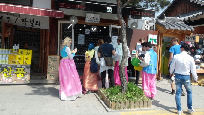 안녕하세요~!! 전주 먹방투어를 다녀온 장세정가이드입니다^^ 자주 가는 전주이지만... 항상 갈 때마다 "오늘은 어떤걸 먹어볼까나~" 라는 생각으로 가곤 한답니다~ 먹어도 먹어도 다음에 갈 때가 되면 무엇을 먹을지.. 생각하게 되는...처음갈 때와 두번 째로 갈 때 느낌이 다른 전주 맛투어~ 오목대를 먼저 영차 영차 올라갔습니다^^ 벚꽃이 피었을 때 가고....꽃이 지고 다시 본 오목대..느낌이 너무 달랐어요^^ ![]() 오목대 화장실 앞에서 보이는 풍경입니다^^ 파릇 파릇~ 산뜻한 느낌?? ![]() 오목대를 찍어보았어요~~ 아.....풍경도 좋고 오목대 위에 올라가보니... 너무 시원해서... 아..........지상낙원이 따로 없더라구요~~너무 너무 누워 자고 싶다는...느낌? 꼭!! 올라가 보세요!! 오목대 안에서 누워서 그림도 그리고 있더라구요~ ![]() ![]() 나름...예쁘게 찍겠다고......나무를 나오게 했는데ㅜㅜ 이렇게 보니.. 위에 나무가 파릇파릇하지가..ㅜ 사진 실력을 더 키워야 겠어요!!!!!! 근데.....실력없는 제가 찍어도 전주..너무 예쁜거 같죠?? 내가 찍어서 나만 그렇게 보이는 걸 수도 있지만요...ㅎㅎ ![]() 오늘은 전주에 사람이 너무 없었어요~ 다우랑 만두집,길러리아 버거, 그리고!! 풍년제과에도 사람이..사람이... 없었어요!!이런일이!! 9일날 전주가신 고객님들~복 받으셨어용~~ ![]() 짜잔!! 전동성당에서 결혼식을!!! 신부 대기실에 아리따운 5월의 신부가 앉아 있으시더라구요 너무 아름다웠어요...하지만 프라이버시를 위해 사진은..찍지 못 햇습니다^^ 3대성당에서 결혼식이라...느낌이 어떨 까요??? 전국의 관광객들에게 축하를 받는 느낌은...? ![]() ![]() 성당에서 돌아오는 길에 발견한 사진전?잘 보시면 여기 한지에 사진을 현상한 곳이에요~ 한지에도 이렇게 예쁘게 현상을 할 수가 있구나..라는 생각과 같은 사진이지만 다른 느낌입니다 뭔가......더....그런느낌?? ![]() 구경을 하면서 먹을 고로케를 획득! 교동고로케에 가서 크림치즈 먹으려다..카레를 먹었어요... ..........그냥 다음에는...크림치즈 먹으려구요...........ㅋㅋㅋ ![]() 길을 가다 발견한 골목이에요^^ 들어가다보면 게스트하우스 커피숍 콩마물 국밥집이 있는데 골목이 예쁘고 조용해서 사진한번 찰칵!!!! 찍어보았어요^^ ![]() 이제 더워졌나봐요....길거리에 분수가~~ 아이들을 분수로 들어가려고 시도하더라구요~~ 열심히 걸어서 더웠는데 분수를 보니 "와~시원해!"라는 감탄사가 절로 나오더라구요~ ![]() 열심히 돌아다닌 나를 위해 잠깐 커피숍에 들어가서 "오디파르페"를 먹어보았습니다^^ 5000원이라고 들어갔는데...6500원..이였어요.. 포장이 5000원..... 오디가 달짝지근 한게 맛있었어요!! 한번 먹어볼만 해요~~ 향교가는 길에 있어요^^ ![]() 파르페를 먹고 휴식을 하고 나오니 외국인들이 한복을 입고 구경을~ 외국인들이 입어주니.. 뭔가 더 뿌듯한? 느낌이 들어서 사진을 찍었어요^^ ![]() 레고 레고 레고!!! 요즘 핫한 어벤져스!!레고가 나왔어요!!! 레고사려다가..ㅜㅜ 갈 때 사야지~햇는데...까먹어서...그냥 빈손으로 집으로 왔다는...다음에 살꺼에요!!!! ![]() 츄러스집에 있는 큰 강아지? 개? 전에 갔을 때는...힘든지..누워만 있더니..오늘은 잘 움직여줘서...찰칵 사진도 찍었어요~ 하지만.....음식을 주거나 괴롭히면...큰 강아지가 힘들어 하니..괴롭히면 큰일나요!! 이상으로 즐겁게 전주먹방투어 후기를 마무리 하겠습니다^^ 항상 즐거운 마음으로 모두 여행을 떠나요~~ 장세정가이드였습니다^^ |