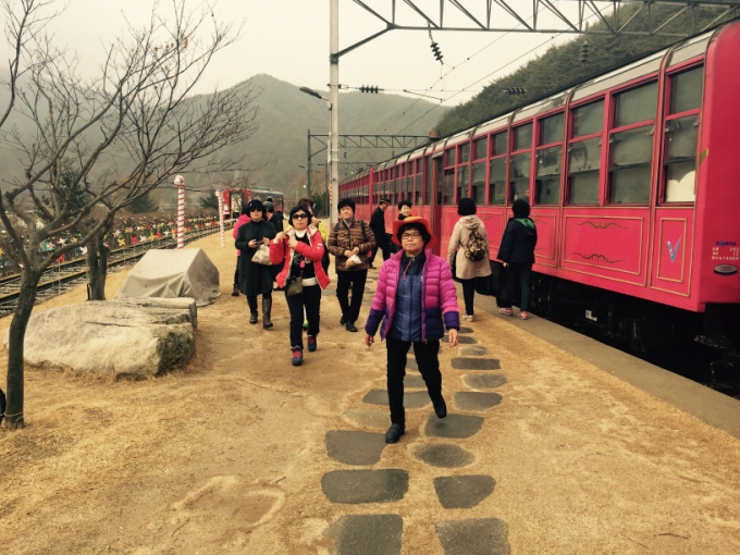 안녕하세요 삼성여행사 가이드 이은민 입니다~ ^^ 2016. 03. 06. 에는 태백 협곡열차, 추추파크, 검룡소, 황지 연못 일정을 다녀왔습니다~ 오전 6시 15분 경 정동진행 열차에 몸을 싣고 여행의 첫 걸음을 시작했습니다. 그리고 북 영천에서 19분의 손님과 함께 말이죠~ 영주역에서 ~ 철암 까지 약 2시간여를 달려서 철암 역으로 가는 일정 이었습니다. 삼삼오오 일행분들끼리 자리도 잡으시고 준비해오신 주전부리도 맛 보시면서 가시는 길! ![]() 독특하게도 영천의 하모니카 동호회에서 이번 여행에 참여해 주셨어요~ 바로 아랫분들! 영주역에서~ 분천역까지는 거의 우리 삼성여행사 손님들 만 타시는 덕분에! 이분들의 아름다운 공연도 함께 할 수 있었습니다. 동영상도 있지만.. 아쉽지만 다음기회로 ^^ ![]() 코레일 직원 분의 배려로 아름다운 음악소리를 열차 전체에 감상 할 수 있는 특별한 경험과 추억을 안고 협곡 열차 여행을 시작합니다. ![]() ![]() 분천역의 백호랑이는 겨울이 지나가는 이 시간에도 여전히 같은 자리를 지키며 손님들을 내려다 보고 있네요 ![]() 이분들은 정말 ㅎㅎ 제대로 놀 준비를 하고 오셨더라구요~! 무려 윷놀이! 저 귀여운 윷이 보이시나요? ![]() ![]() 기차 밖에서도 사진 한장 찍어드리고~ ![]() ![]() ![]() 양원역에서는 역시 막걸리 한잔! ![]() 점심에 찍은 사진은 없네요 ^^;; 잠깐 자리 비우신 해설사님 대신해서 제가 황지 연못에 전설을 간략하게 설명도 드리고 식사도 했습니다. 밥장사 25년만에~~ (아시는 분은 아시죠??) ![]() 황지에서 또 한곡조~! ![]() 하이원 추추파크에 들어갑니다. 추추파크로 바로 들어가는 건 아니구요~ 버스를 타고 폐역이 된 통리역에서~ 레일코스터를 타고~ 추추파크로 들어갑니다. ![]() 한 200미터만 열씸히~~~ 달리면 (다리가 엄청 아파요) 편하게 내리막 길이 나와서 쉽게 갈 수 있습니다. ![]() 대기중인 앞차 (오늘 막내손님이 직접 발을 못굴려서 서운해 했다고해요ㅠㅠ) ![]() 왠 무서운 사진?! 이다 싶으셨을건데 레일코스터를 달리면 약 12개의 터널을 만나시게 되는데 각각 특이한 구조로 꾸며져 있다고 합니다. 근데 레일 코스터 자체가 워낙 시끄러워서 방송도 나오는데 소리가 하나도 안들리네요 ㅠㅠ 또 추추파크에 도착하셔서 또 한곡조 뽑으시고~!! 사진도 찍으시고~ 미니트레인도 타시고~ ^^ ![]() ![]() 추추스테이션 정말 예쁘게 잘 지은것 같네요~ 자 이제 여행 코스로는 마지막 코스 입니다. 아까 위에 황지 연못(낙동강발원지)를 들렸으니 또다른 강, 우리나라에서 가장 유명한 강 한강발원지에 가봐야 하지 않을까요? 한강 발원지 검룡소에서는 문화 해설사 님께서 알찬 설명 해주셨어요~ 보통 올라가는 길은 20 여분 정도 걸리는데 이날 눈,비 다음날이라 길이 질척거려서 조금 오래걸렸었네요~ ![]() ![]() ![]() 정말 아름다운 모습이 아닐 수 없습니다. 아직 새싹이 움트기 전이라 고즈넉한 모습이지만, 이제 야생화들이 피어오르는 봄의, 푸르른 여름이, 단풍지는 가을이 기대되는 검룡소의 모습이 아닐 수가 없습니다. ![]() 이날도 우여곡절이 많고, 점심즈음 부터 제가 감기로 목이 가는 바람에 완전히 좋은모습을 보여 드리지 못해서 너무너무 아쉬웠어요~! 다음 여행에서는 더더욱 좋은 모습으로 만나뵐 수 있었으면 좋겠습니다. 2016.03.06 여행 함께한 가이드 이은민 이었습니다. ^^ |