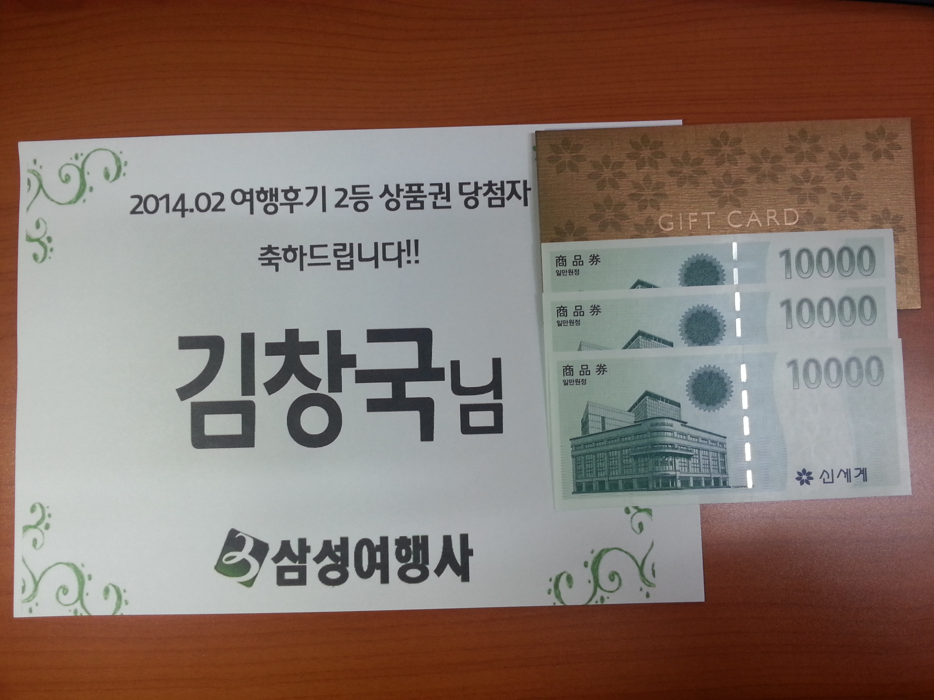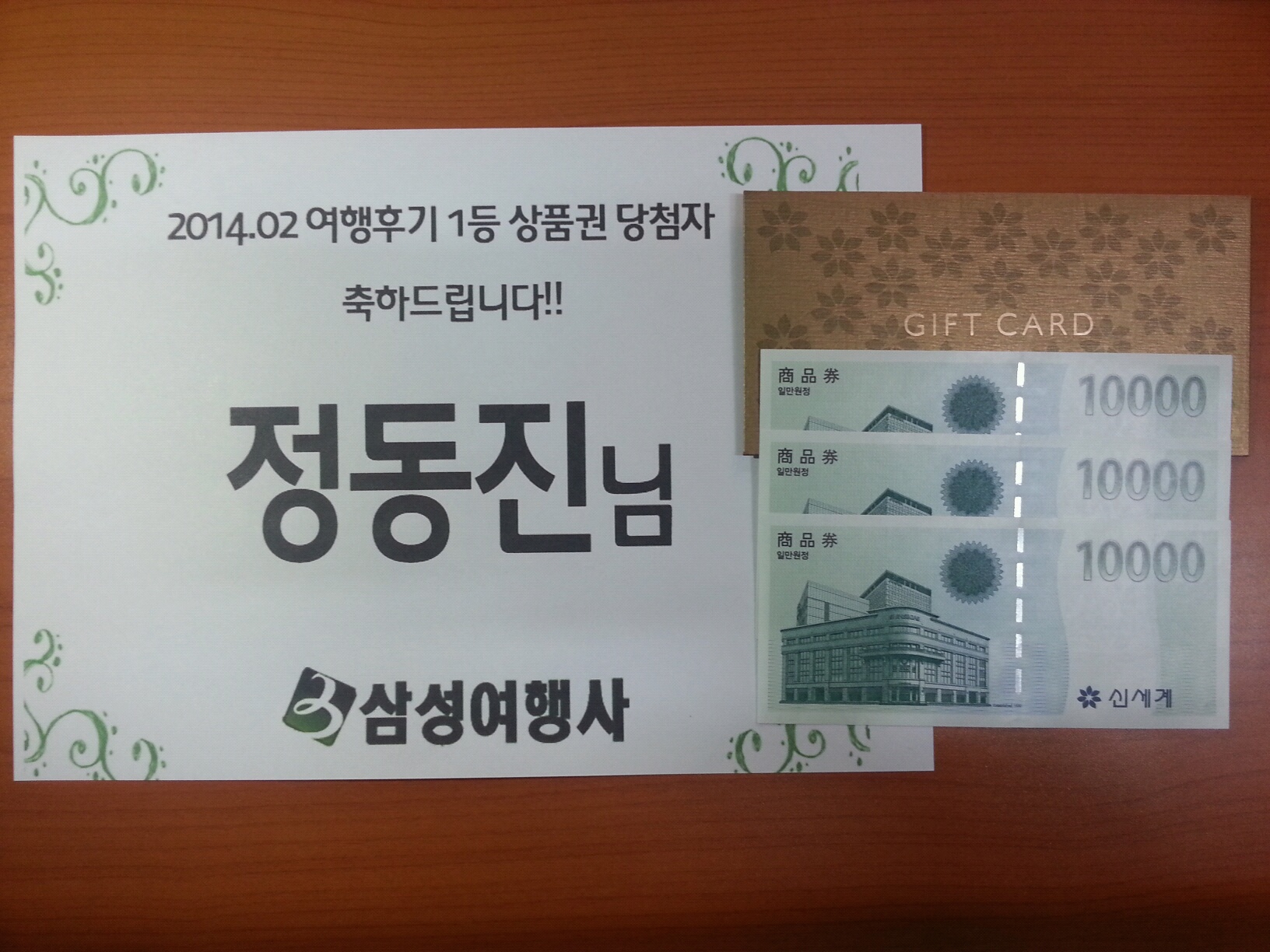 안녕하세요~ 삼성여행사 입니다. ^-^ 2014년 2월 후기 하나하나가 매우 알차고 정성스러워 정말 고민을 많이 했습니다! 여러직원들과 여러날을 고민 끝에 아래와 같이 담청자를 발표합니다~ 1등 백화점 상품권 당첨자 : 정동진님 (010-xxxx-1942) 2등 백화점 상품권 담첨자 : 김창국님 (010-xxxx-3969) 3등 무료영화권 당첨자 : 2월내 후기 작성한 모든 분~ 당첨되신 분들 모두모두 진심으로 감사드리며 (김창국님을 부산분이시라 2등상품으로 준비된 식사권이 대구지역으로 되어있어 상품권으로 대신하며 부산분들 부산지역 식사권은 빠른 시일내에 준비하도록 하겠습니다~) 1,2등 당첨자는 상품권 수령지로 인해 이번주 내로 담당자가 따로 유선상 연락드리며 영화권은 이번주 내로 후기 쓰실때 등록 당시 또는 회원가입하실때 등록해주신 핸드폰 번호로 모바일 발송드리니 확인 부탁드립니다. 감사합니다~~~ ![]() ![]() |