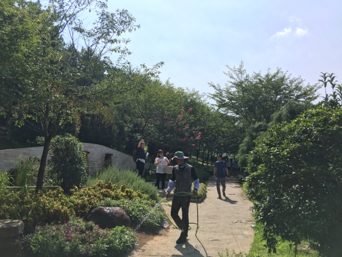 | 안녕하세요ㅎㅎ 더위가 기승을 부리던 8월 14일, 39명의 고객님과 함께 남해를 다녀온 가이드 장혜리 입니다ㅎㅎ 이번에도 역시나 폭염이 내려 땀이 주르륵 흐르던 날씨였지만, 함께 여행한 고객님들께서 열정적으로 투어에 참가해 주셔서 즐거웠던 여행이였습니다ㅎㅎ  남해 쪽으로 여행하면 거의 항상 들르게 되는 문산휴게소 입니다. 역시나 한여름이라 분수가 멋지게 뿜어져 나왔습니다. 이번엔 트릭아트보다 여기 이 분수에서 사진을 찍은 고객님들이 더 많으셨습니다ㅎㅎ   소망의 다리로 올라가 분주를 구경하고 사랑의 다리로 내려오는 이 코스는 언제 가도 질리지 않는 것 같습니다. 이번에도 역시 원예예술촌이 더 좋더라고 말하시는 고객님이 더 많으셨습니다.       저번여행보다 박원숙씨의 커피&스토리에서 음료를 사 드신 분이 훨씬 많았습니다. 아무래도 기온이 기본적으로 30도가 넘어서 그랬던 것 같습니다.  유자하우스에 팔던 유자 마늘빵입니다. 유자맛보다는 마늘빵 맛이 더 많이 나서 아쉬웠습니다. 그래도 페스츄리 질감의 빵이라 맛있었습니다.  가마솥 팥빙수를 파는 곳의 작은 정원에는 폭포가 흘렀습니다. 언제 봐도 이 폭포는 귀여운 것 같습니다.   점심을 먹으러 미조항에 왔습니다. 이번에도 역시 점심시간이 짧다고 느끼시는 분들이 많았습니다...ㅜㅜ    7월 말에 간 것 보다 피서객의 모습이 더 많이 보이는 송정 솔바람 해변입니다.     오후의 살인적인 더위를 뚫고 다랭이 마을을 구경하셨습니다. 저번보다 더 더운 날씨에, 많은 고객님들께서 암수바위까지만 갔다 오셨던 것 같습니다. 가을과 봄이 아름답다곤 하지만, 여름에도 여전히 이색적인 느낌을 주는 여행지 인 것 같습니다. |