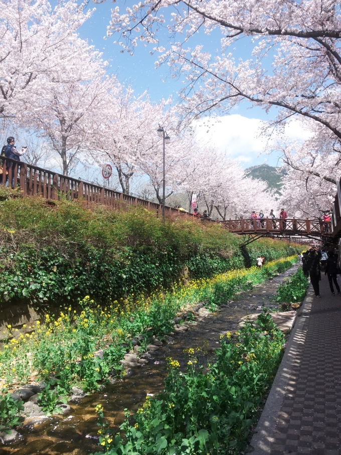 진해군항제를 작은아이와 함께 버스여행으로 다녀왔습니다. 불편하지 않을까 여러모로 걱정했었는데 날씨도 좋았고, 친절하신 가이드님의 안내로 편안하게 진해에 도착했습니다. 진입하는 입구부터 벚꽃이 만개하여 도로에도 산에도 벚꽃천국 이었어요^^ 군항제기간에만 개방된다는 해군사관학교를 맨처음으로 들렀습니다. 제복과 모자를 무료로 대여해주어서 마스코트인형들과 사진도 찍고, 실물크기의 거북선과 박물관등을 관람하였습니다. ![]() ![]() 다음코스는 드라마촬영지로도 유명한 여좌천의 로망스다리 입니다. 말로는 표현하기가 힘이드네요ㅎ 끝이보이지 않을정도에 벚꽃길이 다리를따라서 쭉~연결이 되어있었어요. 다리아래에도 산책로가 되어있어 길따라 유채꽃도 피어있었고, 아래에서 위쪽으로 벚꽃나무를 올려다보니 또다른 느낌이었어요. 불어오는 바람결에 꽃잎이 흩날리는 모습이 너무 이뻐서 사진에 담아보려고 애썼지만 한계가ㅎㅎ ![]() ![]() 다음 행선지로 이동을 해야하는데 로망스다리에서 너무 많은시간을 보낸탓에 서둘러서 중원로타리로~ 장터먹거리골목을 지나 제황산공원 모노레일카를 타고올라가 진해시내를 둘어 봤어요. 모노레일기다리는 시간이 넘길어서ㅠ.ㅠ 걸어올라가는데는15분정도 소요...체력좋으신분들은 걸어올라가심을 추천해드립니다ㅎ ![]() ![]() 5분정도 버스를타고 이동하여 경화역으로 이동했습니다. 철길가로 하늘을 가득매울듯한 벚꽃들이 장관을 이뤘어요. 현재 기차가 운행중인 철길이라 들었는데 때마침 지나가서 사진하컷 찍었네요^^ ![]() ![]() 평일 여행이여서 그런지 모든일정이 순조롭게 빨리 끝났습니다. 돌아오는길에 버스안에서 간단한 게임도하고(빙고게임/묵찌빠) 둘다 아쉽게 떨어지긴했지만 재밌고, 지루하지않게 잘 도착한거같아요. 아이가 무척 좋아하네요^^ 나눠준 프린트물 보면서 다른데 또가자고 난리네요 ㅎㅎ 항상 아이들데리고 다니면 여행끝에 후유증이 많이 남았는데, 이번 버스여행은 아무 부담없는 만족한 여행이 된거같습니다. 교통도 막힘이 없었고, 벚꽃도 아직 풍성하니 보기좋았고...가이드님(영미언니ㅎ)도 매우친절하시고 다음 또 이용하겠습니다 아래사진은 로망스다리에서 만원(50%할인)주고 그린 캐리커쳐...아이가 꼭 올려 달라고하네요^^ ![]() |