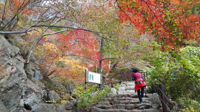 10월 22일 친절하고 멋있는 분들과 영주에서 열린 풍기인삼축제를 다녀왔습니다. 풍기인삼축제를 가기 전, 첫번째 여행지는 희방사입니다. 아침에 하늘 가득 어두운 구름이어서 걱정되었으나, 희방사에 도착해서는 맑은 하늘이어서 기쁘게 트레킹을 할 수 있었습니다. ![]() ![]() ![]() ![]() ![]() ![]() ![]() 희방사를 향해가다 빨갛게 단풍든 나무와