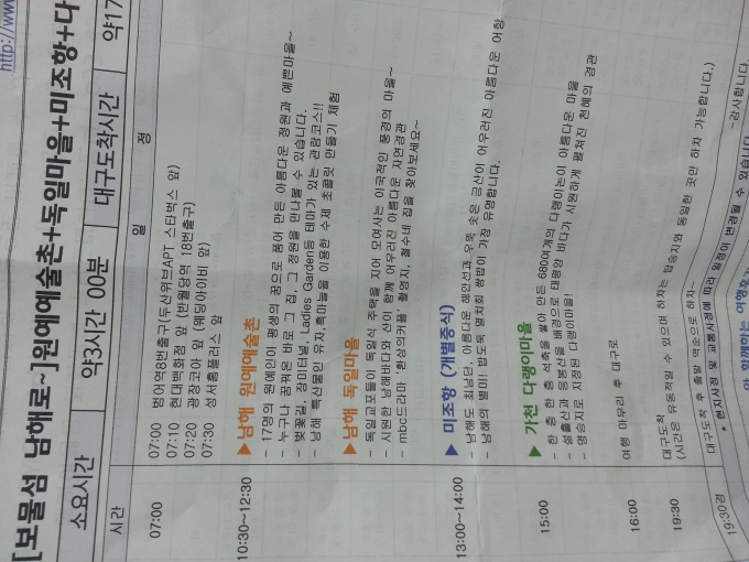 이번 여행일정은 대구에서 7시에 남해로 출발하기로 되어있었는데요