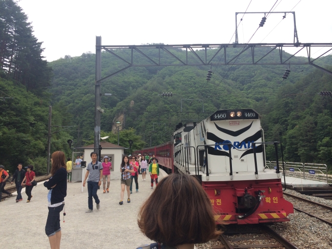 협곡열차를 타기 위해 도착한 분천역입니다. 저 멀리 영주로부터 출발한 협곡열차가 들어오고 있네요 ^^ 첫 번째 간이역이자 우리나라에서 가장 작은 역인 양원역입니다. 세상에서 가장 작은 역이라고 해도 과언이 아닌 곳입니다. 지금은 계절이 계절인만큼 산딸기와 오디도 팔고있는데 정말 달달하네요 gg 저 멀리 소원들어주는 용관바위가 보이는 승부역입니다. 오늘의 해설사이신 이명숙해설사님이 한창 설명을 진행중이신데요 카메라를 의식하신건 아니겠죠? ^^ 이번에도 역시 방문인증을 열심히 해주시는 우리 삼성 손님들! 황지연못 주변에는 황지자유시장과 더불어 태백의 먹거리를 입맛대로 즐길 수 있는 식당들이 즐비합니다. 이번에는 물닭갈비를 먹었는데요, |