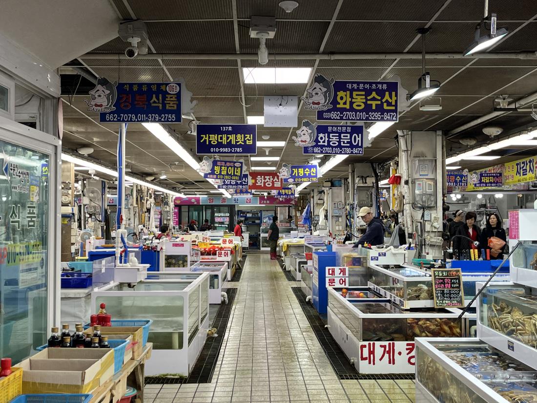 주문진시장은 수산시장과 종합시장으로 양쪽이 나뉘어 있어 취향에 따라 둘러볼 수 있었고 장을 본 뒤 주문진항에 가서 방파제와 푸른 바다를 보며 잠깐의 휴식을 취할 수 있었습니다.