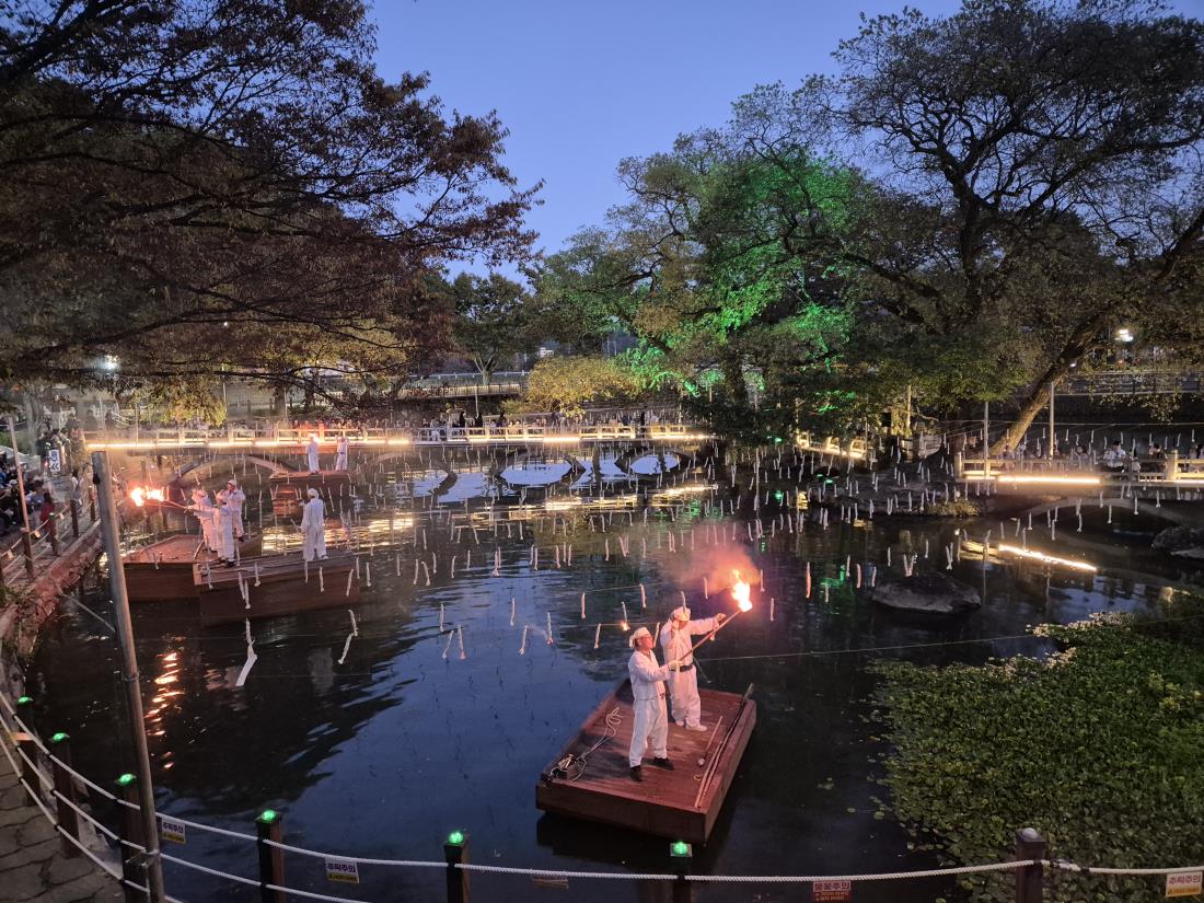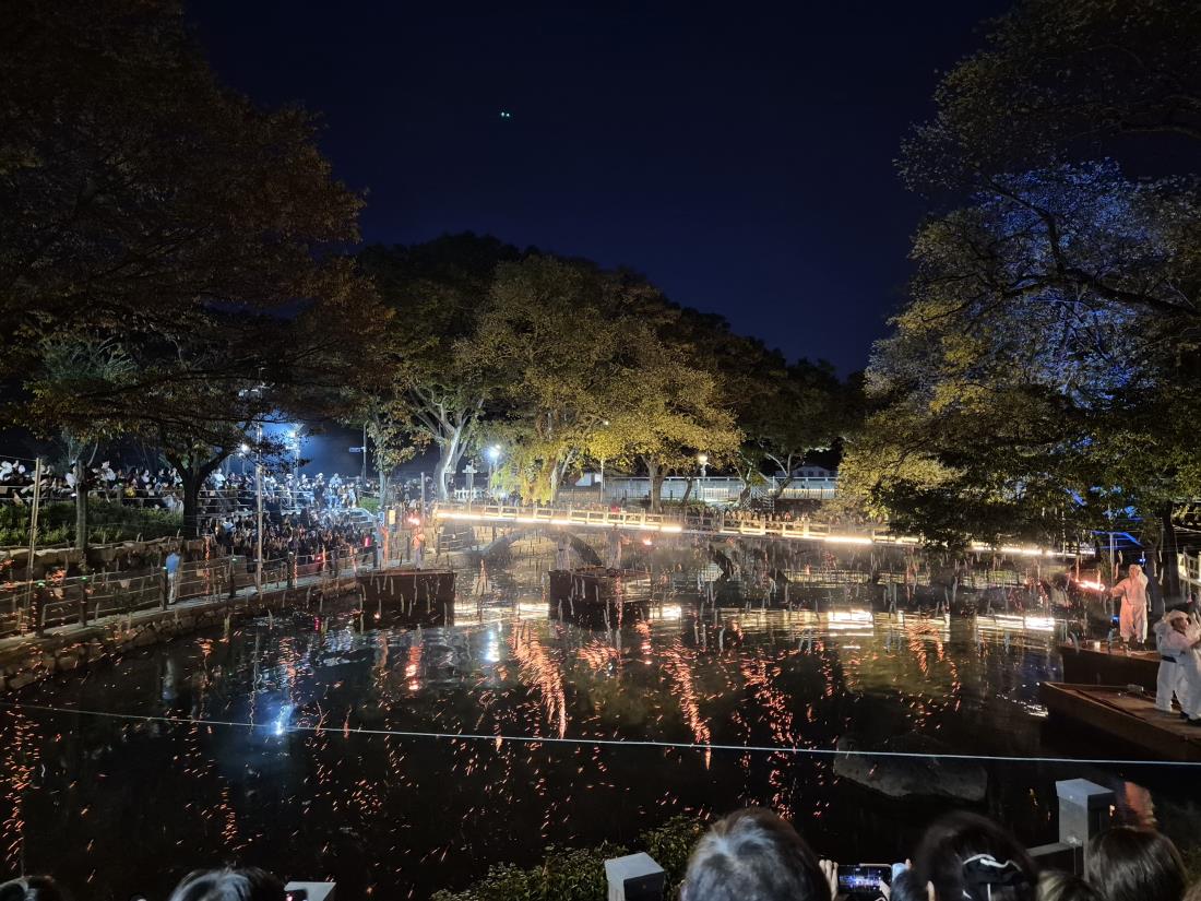 가을날 보는 낙화놀이는 봄, 여름과는 또다른 깊음이 있었습니다. 어둠이 완전히 내려앉은 무진정에서 국악공연과 어우러지는 흩날리는 불꽃들을 보며 가을여행을 잘 마무리 할 수 있었습니다. |