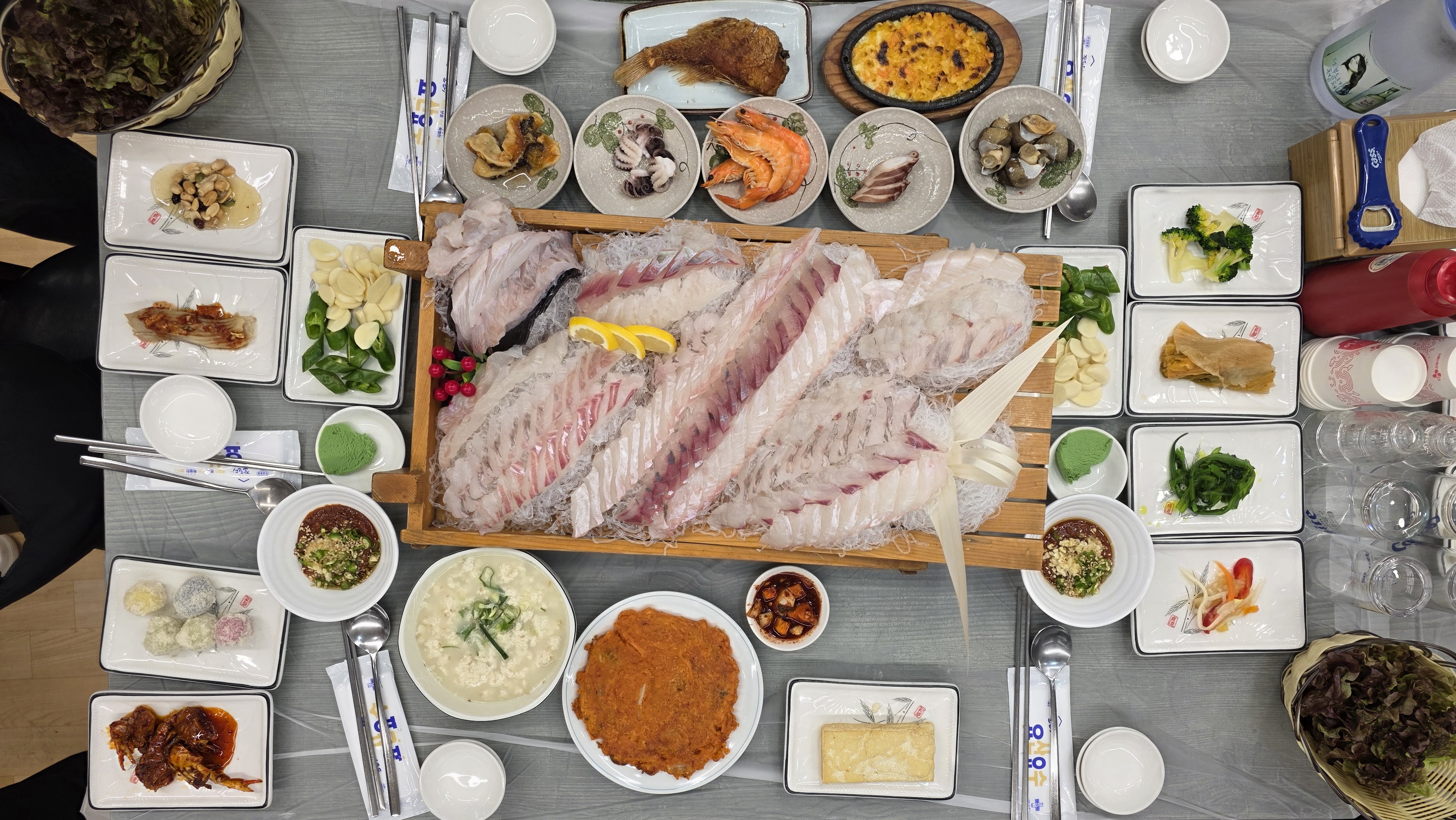 경포해변을 바라보며 모듬회정식을 먹으며 정겨운 얘기꽃을 피웁니다