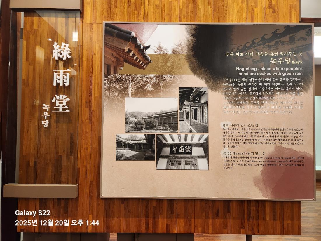 겨울 중턱이라지만 포근한 날씨... 친구와 멀리 해남까지 나들이~~~ 먼저 일본에 논어와 천자문을 전하여 아스카 문화의 기반이 되게 한 왕인박사의 유적지를 여유로이 둘러보고 낙지로 이름난 독천 낙지거리에서 한우갈락탕으로 맛나게 점심을 먹었다. 다음은 고산 윤선도의 유적지를 관람하고 마지막으로 해남의 모노레일을 타고 땅끝 전망대에 올라 흐린 날씨 탓에 희뿌연 바다를 구경하고 땅끝탑은 비가 내려서 생략~~~ 카페에서 차 한 잔하며 오늘 여행 마무리 ~~♡ 먼거리를 안전운전해주신 기사님과 친절한 조길현 가이드님 덕분에 더욱 즐거운 여행이었다.
