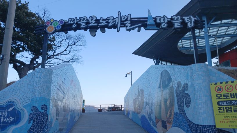 식사 후 잠시 거리를 거닐다 녹우당으로 이동하였는데 해설사님의 열정적 설명 덕분에 자유시간이 촉박하여 500년된 은행나무와 비자나무만 보고 내려와야 했다. 50분간 버스를 타고 땅끝마을로 이동하여 모노레일을 타고 전망대를 올라가 한반도의 땅끝을 바라보고 내려와 군고구마를 먹으며 바닷가 해안길의 데크를 따라 산책하고 왔다. 한겨울 오후 바다의 윤슬은 참으로 아름다웠다.