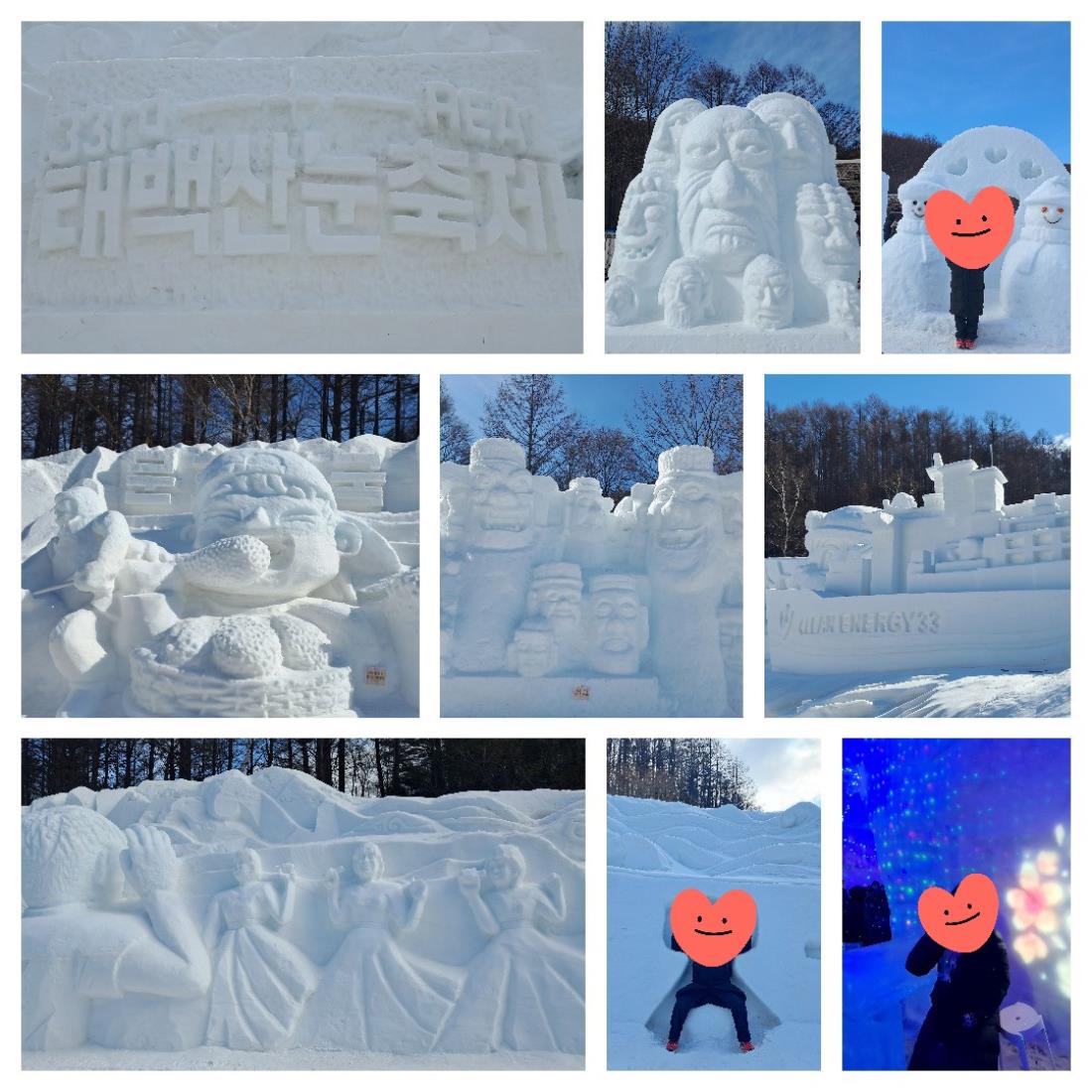 나의 2월 첫 여행지는 태백&정선! 케이블카 타는걸 무서워해 정선오일장+병방치스카이워크 코스를 신청하려다가 지금 아님 언제 스키장 한번 가보겠나해서 하이원곤돌라 코스를 신청했다 결과는 완전 대만족! 올라갈때는 여러명이 타서 몰랐는데 내려올때는 곤돌라에 혼자 타서 그런지 흔들림이 심해서 완전 쫄았다 눈축제는 규모가 큰편은 아니었지만 오목조목 재미있는 포인트가 꽤 있었다 우리동네에서는 절대 볼수없는 눈. 실컷 밟고 만지고 너무 좋았다 오늘 첫 가이드업무보신 가이드님,안전운전 해주신 기사님 너무 감사합니다