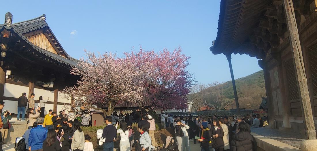 통도사가는길이 너무 막혔지만 그 많은 인파들 속에서 붉게 활짝 피었다가 저물어가는 홍매화는 짧은 우리의 인생도 이라하지 않을까! 생각각되는 인생이 느껴지는 여행이였습니다