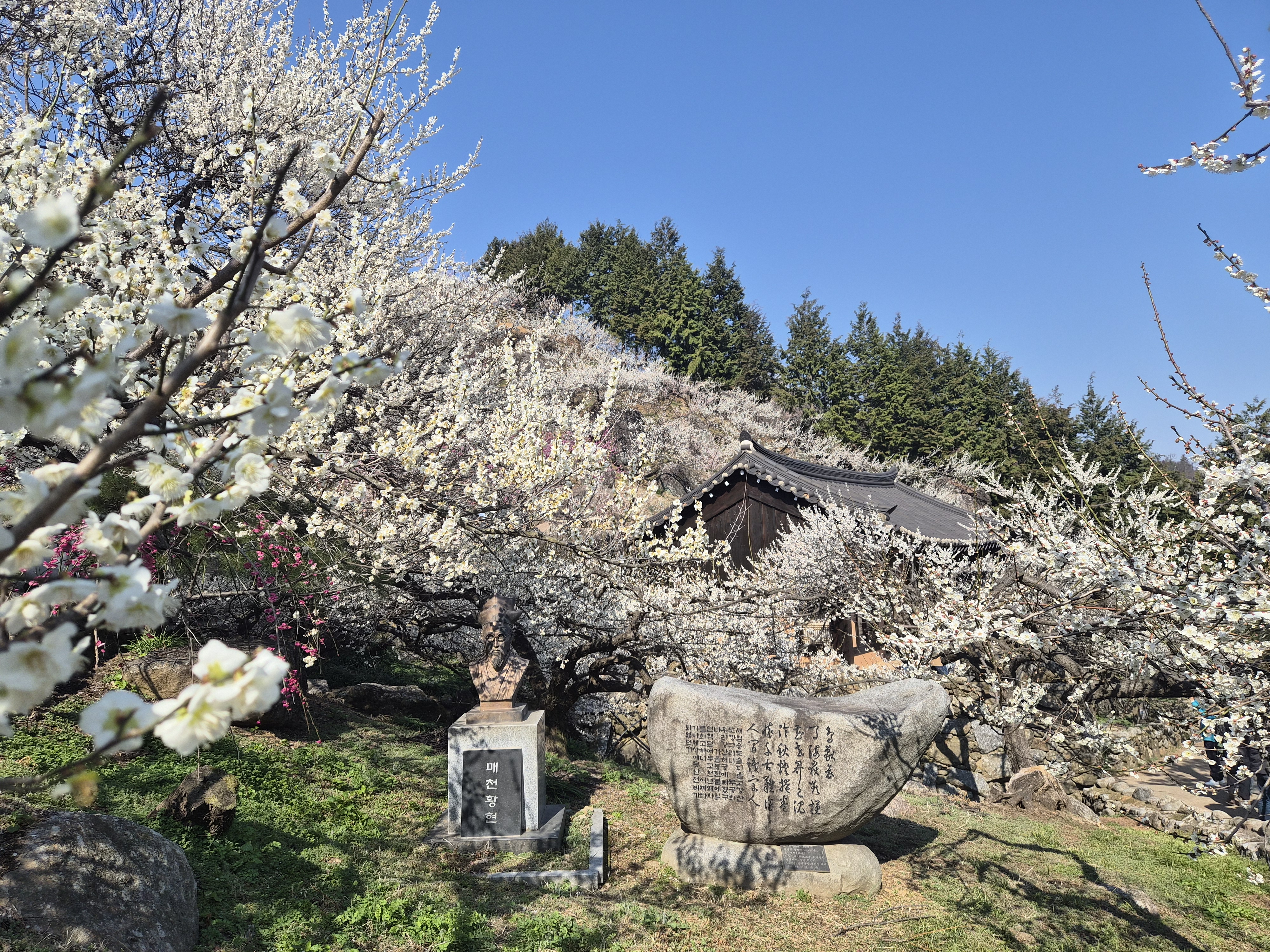 오늘의 마지막 코스 순천 선암사 매화 - 원통전 뒤편과 각황전 옆 담에 수령이 350~650년 이르는 오래된 매화나무 50여 그루가 서식하고 있는데 만개하면 장관을 이룬다고 하여 이 매화나무를 선암매라 부른다고 한다.. 하지만 산속이라 그런지 아직 만개 하지는 않았다.. 날씨가 너무 좋아 많은 사람들이 출사를 나온듯 했다....여기 저기 카메라 셔트 누르기에 여념이 없었다.. 오늘 너무 좋은 날씨에 좋은 사람과 아름다운 꽃구경을 원없이 하였더니 멋진 하루를 선물 받으거 같아 너무 행복 합니다...