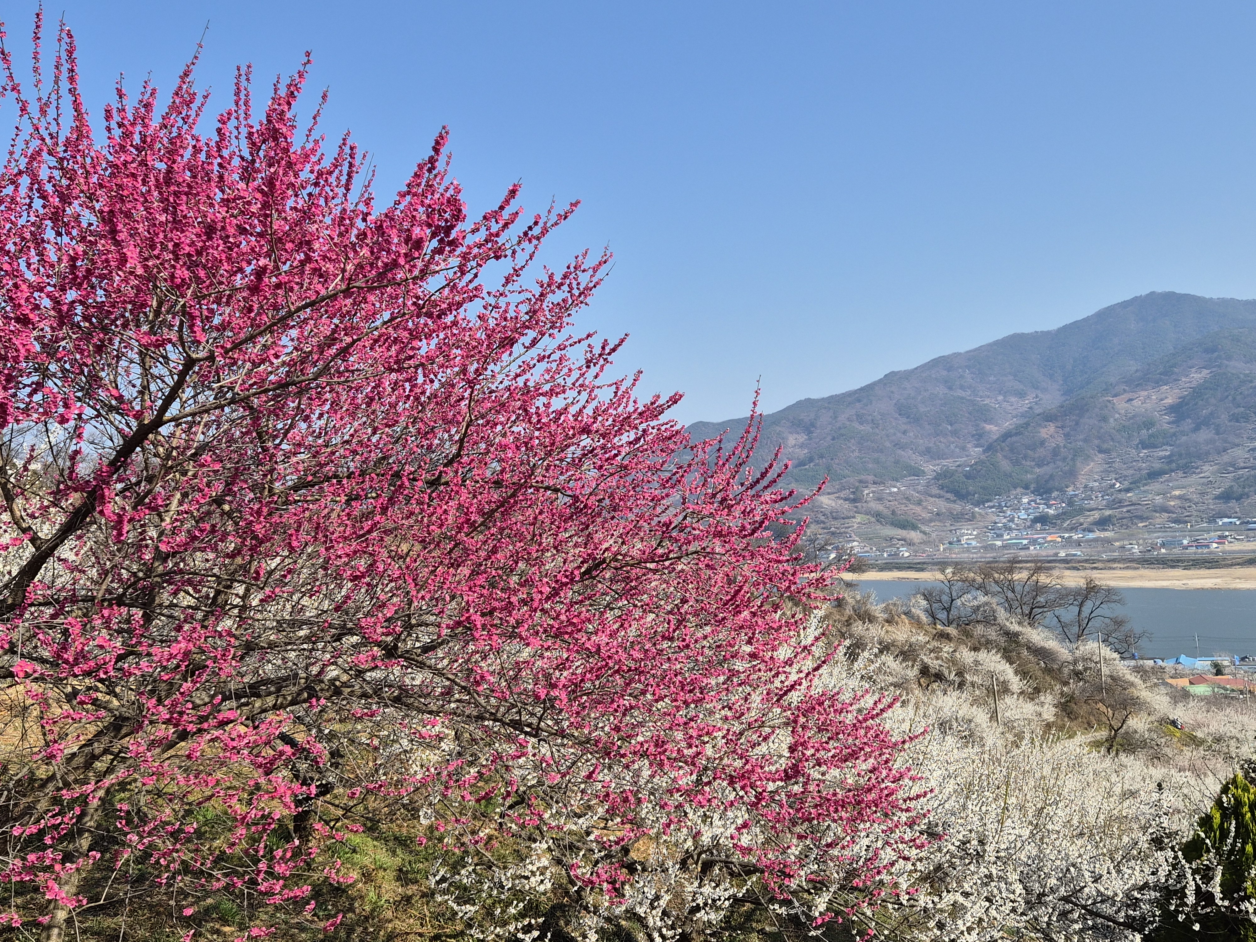 처음으로 떠나는 광양 매화 마을 축제 잔뜩 기대 하고 평소 같으면 일어나지도 못하는 새벽 5시에 기상하여 준비하고 출발 go go~ 버스 탑승지에 도착하여 버스를 기다리는데 드림관광 버스 3대가 왔으나 왠걸 우리가 타야 하는 버스번호만 보이지 않는다...조금 늦나 보다 했는데 가이드 전화가 왔다....전날 오후에 차량변경 문자를 보냈었다고.... 난 오전에 문자 2개만 확인하고 오후에 온 문자는 똑같은 문자라 생각하고 그냥 넘겼는데 그 문자가 차량변경 문자였다니...다음에는 똑같은 문자라도 한번 더 확인 하는 습관을 가져야 겠다.. 나는 백매화, 홍매화, 산수유 하얗고 노랗고 분홍분홍한 꽂들을 모두 보고 싶었지만 오늘은 하루 종일 매화 향기에 취해 보기로 한다.. 2시간 30분 정도 이동 후 사천 휴게소에 20분 휴식 타임을 가진다....간단히 옥수수랑 핫바 하나 먹고 다시 버스 탑승~ 드디어 오매불망 기다리던 광양 매화 마을 도착...어라 왠걸 아직 날씨가 차다.. 봄 꽃 구경이라 바람막이 입고 왔는데...그래도 다행히 걷다보니 기 온도 오르고 날씨도 화창해지고...봄 꽃 구경에 완전 딱인 날씨가 되버린걸~ 오전 9시 이른 시간이라 생각 했는데 벌써 꽤 많은 사람들이 붐비고 있 었다.. 매화 마을 축제 기간에는 입장료를 발급해야 하나 같은 금액 지역 상품권으로 대체 해준다...지역 활성화를 위해서인 듯....우리는 매실 아이스 크림이랑 매실 막걸리로 받아왔다.. 가이드님이 추천해준 매실 아이스크림 새콤달콤 너무 맛있었네요.. 막걸리는 아직 보관중..ㅎㅎㅎㅎ 포토존에는 벌써 많은 사람들이 대기를 하고 있었다.. 전망대에서 바로본 매화 마을은 전체가 너무 아름답고 황홀했다...하루종일 꽃길을 거닐어도 시간 가는줄 모를 듯 했다.. 매화향에 취하고 싶었으나 생각만큼 코 끝을 자극 하지는 않았다.. 매화꽃 천국이라는 광양매화, 꽃길따라 물길따라 섬진강 매화여행!!!! 새하얀 눈꽃이 가득한 섬진강변 매화마을을 뒤로 하고 순천 낙안읍성으로 달렸 다