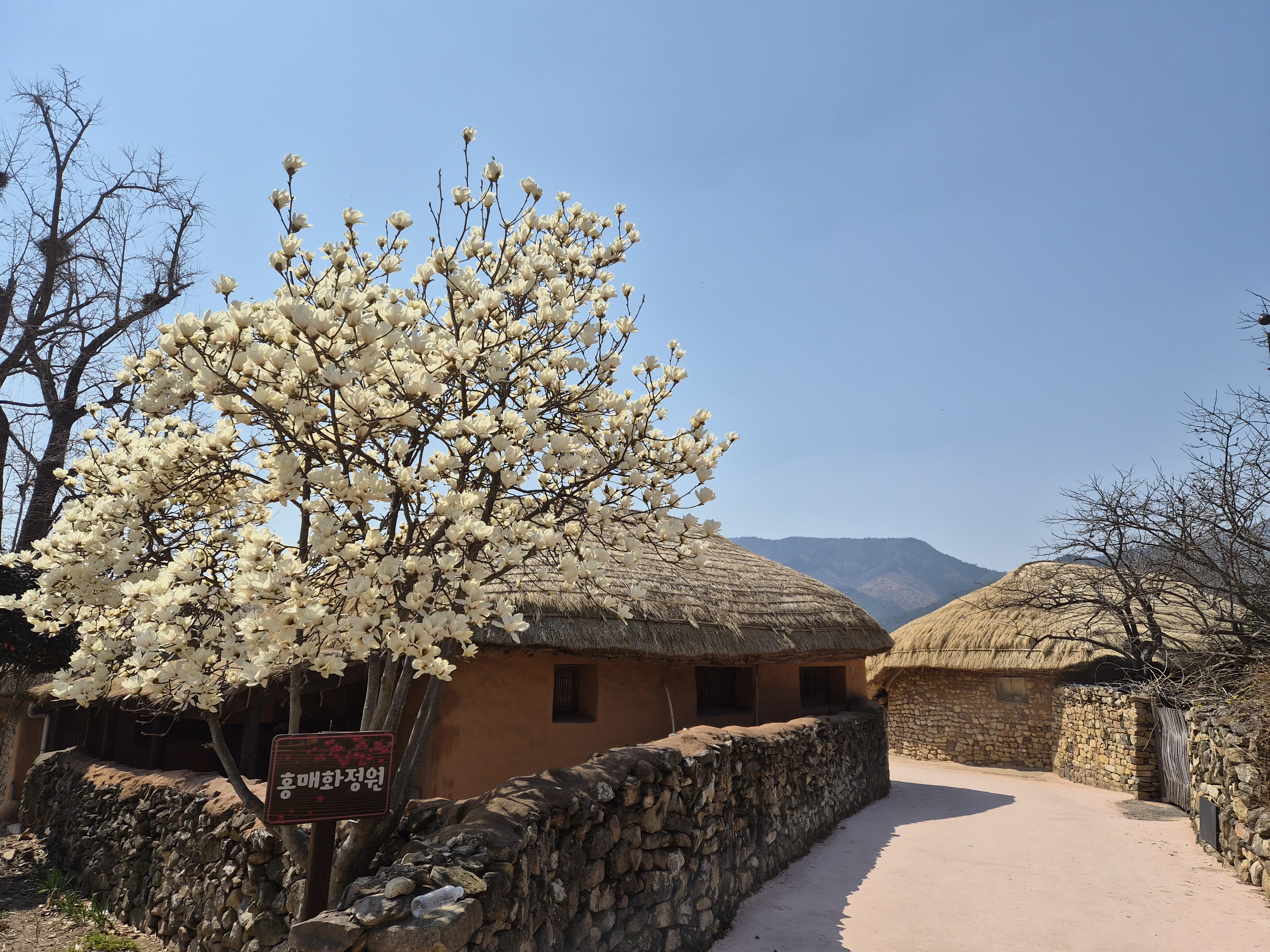 1시간 조금 넘게 달려 낙안읍성에 도착...출출한 허기를 달래줄 순천 8미중 하나....꼬막 정식을 먹었다..삶은꼬막, 꼬막구이, 양념꼬막, 꼬막회무침, 꼬막전 둘이서 족히 꼬막 100마리는 먹은 듯 하다.. 당분간 꼬막에는 손이 안 갈듯....ㅋㅋㅋㅋ 우리나라 3대읍성 중 하나인 순천 낙안 읍성....조선시대 모습을 간직한 전통 한옥 마을로, 성곽과 초가집이 어우러진 풍경이 절경이다. 주민들이 실 제 거주하며 생활하는 살아있는 문화유산으로 전통 공연과 다양한 민속 문화 체험도 가능하다고 한다. 낙안읍성이 한눈에 내려다보이는 전망이 가장 아름다운 곳 빈길등!!!!! 여기서 바라보는 낙안읍성은 그야말로 장관이다.. 낙안읍성에도 홍매화 정원이 있었으나 홍매화보다 목련 한그루가 더 만개하여 방문객을 맞이 하고 있었다. 대장금 이 얼마만인가???