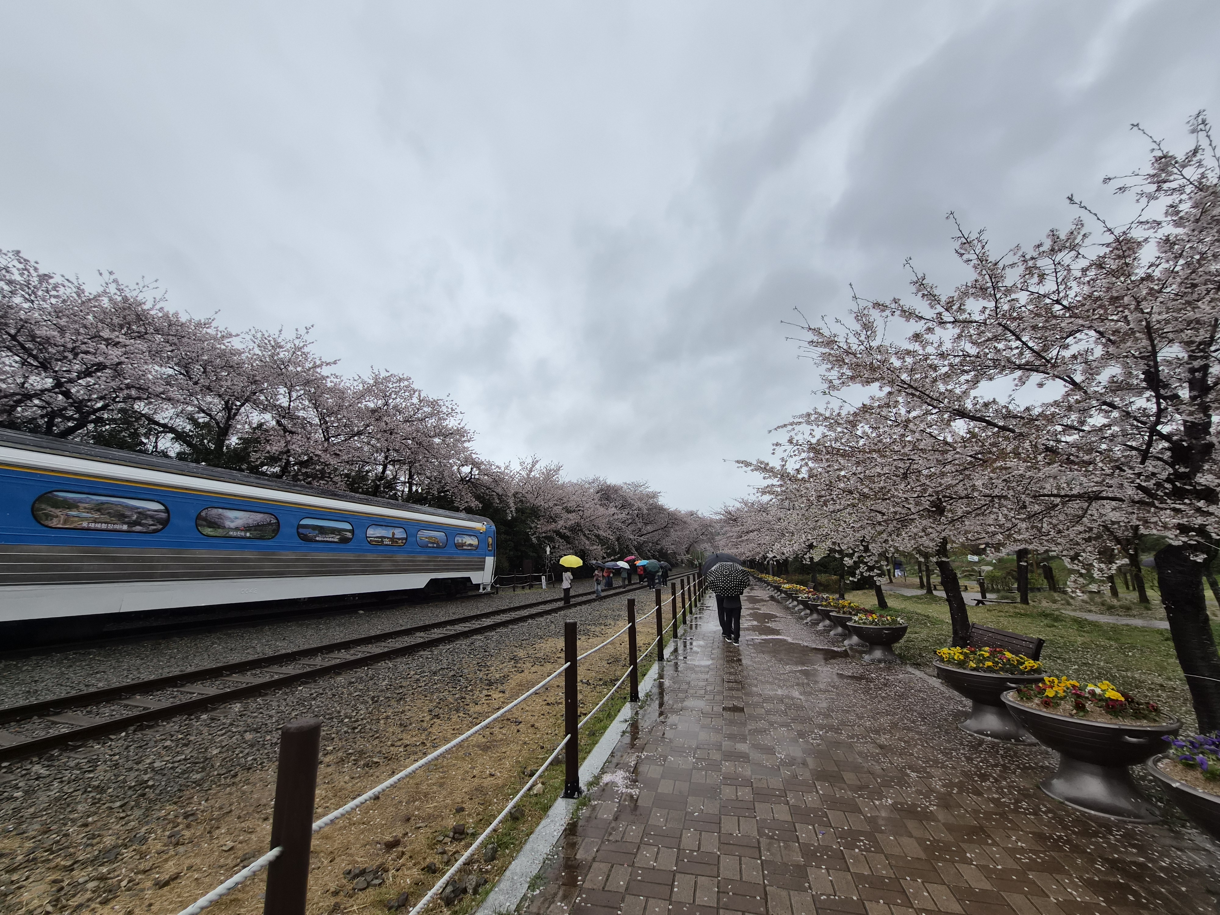 지난달 광양매화마을 관광 후 너무 좋아서 집가자 말자 벚꽃 축제 바로 예약 했다.. 예전부터 벚꽃축제 진해 군항제는 꼭 한번은 가보고 싶은 관광지여서 여행상품에 있길래 바로 클릭 클릭 했다... 근데 일기예보에 비가 떴다....우리는 항상 움직이면 비를 몰고 다니는지....비가 내린다... `나는 비가와도 벚꽃이 다 떨어져도 진해 군항제 한번은 간다`는 마음으로 출발~ 하지만 마음속으로는 한없이 빌고 또 빌었다...진해 도착하면 짠하 고 햇님이 나타나 주기를..... 첫 도착지 경화역 벚꽃길에 하차했지만 비는 그칠 줄 모르고 우리들 마음을 아는지 모르는지 주룩 주룩 내렸다.. 밤새 내린 비로 벚꽃이 다 떨어졌을거라 생각과는 완전 다르게 아직 벚꽃이 많이 매달려 있었다...우리가 오기만을 기다린것 처럼... 비는 내려도 관광객들은 저마다 기념 사진 남긴다고 여념 없었고...우리도 그 관광객들 속에 함께 있었다... 날씨만 좋았으면 너무나 아름다운 관광지로 기억될텐데...비가 내려 조금은 아쉬웠다... 하지만 벚꽃비 맞은 기분은 나쁘지만은 않았다.. 오늘의 메인 장소라 생각하는 여좌천 로망스다리는 정말로 최고였다...요즘은 국내 인기 있는 관광지는 외국인들이 진짜 많다~ 수백장의 사진을 남기고 여좌천을 내려 오자 빗방울이 잦아들기 시작했다... 잠깐 다시 가서 사진 찍을까도 고민했지만 우리의 여행은 아직 끝나지 않았기에....미련없이 떠나 왔다... 오전에 방문했다 안전상의 문제로 튕겼던 해군사관학교랑 11부두로 다시 이동했다...셔틀이 있다 했지만 걸었다....흩날리는 벚꽃들을 맞으며... 군항제기간에만 개방하는 해국사관학교...생각보다 규모가 엄청 컸다...돌아올때는 셔틀을 이용해야 할 정도로...ㅋㅋㅋ 너무나도 큰 군함도 구경하고 사관학교 박물관도 구경하고 이때 아니면 올 수 없는 관광지... 나름 알차게 돌아 다녔다... 도심전체가 벚꽃들로 가득한 진해는 나무들 규모도 어마어마 했다... 왜 벚꽃하면 진해를 떠 올리게 되는지 이제서야 알게 됐다... 언제 어디로 떠나던 여행은 항상 설레고 기분 좋게 만든다....비오는 진해 군항제 여행도 내 기억 속에 오래 오래 남게 될 것이다...