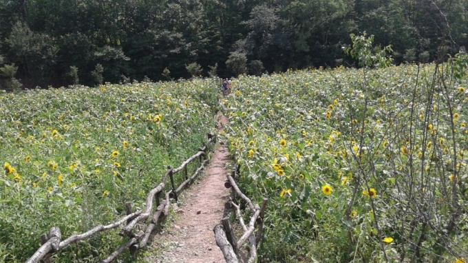 드디어 태백에 해바라기 축제기간입니다.![]() 몇년전 블러그를 통해서 해바라기 축제가 열리는거 보고 정말 가고 싶다는 생각이 들었습니다. 어릴적 노랗고 커다란 해바라기에 키를 재보기도 하고 꽃이 너무 이뻐서 들고 다니고 그리고 꽃이 질때쯤이면 씨를 말려서 먹었던 기억이 있어서 해바라기를 무척 좋아하는데요... 그래서 그런지 저는 색상도 노란색을 좋아합니다. 그저 좋아만...(의상은 노란색이 제가 안어울려서 ㅜㅜ 바라만 보는 색... 노란색) 해바라기 축제가기전... 협곡열차를 탑승하러 무궁화호 타고 분천역으로 향했습니다. 협곡열차는 우리여행사 대표 핫 아이템이죠.. ![]() ![]() 날씨가 더워도 이 열차가 출발하면 시원해집니다. 참고로 협곡열차에는 에어컨이 없어요... 밖에서 들어오는 바람이 상쾌하므로 에어컨은 없어도 좋아요 승무원들이 공연을 해주는 날도 있고 안해주는 날도 있다는데... 이날은 손님이 많아서 pass하신다네요... 대신 아이들에게 풍선을 불어주더라구요... 마술도 보여주고... 열차가는 중간에 멈추는 양원역... 제가 술이 왜 술인지 말씀드렸죠? 한잔 두잔 먹다보면 술술넘어간다고 술이라고.. ㅋㅋㅋㅋ 여기서 파는 잔막걸리.. 너무 맛있죠... 저도 좋아라하는데요... 이날 우리 어머님 중 한분 토마토 몇십개를 단돈 4천원에 사셨다는거... ㅡㅡ 부러웠습니다. ![]() 태백에 도착해서 점심을 먹었는데요 곤드레밥을 삼성여행사에서 제공해드렸습니다. 근데 반응이 뜨거웠어요 너무 맛있다고... 제 사진에는 반찬사진만... 제가 너무 열중해서 먹는바람에 ㅜㅜ 손님들께서 식당 너무 잘 선택했다고 칭찬을 얼마나 하시는지 우리 입맛까다로운 꼬마 신사들도 법 한그릇을 다 비우면서 "제가 나물 안먹는데...이밥 너무 맛있어요!!!" 이렇게 말할정도의 맛이었습니다. 주의점!!! 곤드레밥 드실때 양념장 넣지말고 드셔보세요... 정말 맛있어요... ![]() 다음 코스는 고생대 박물관... 사진이 이쁘게 나온게 없어서 좀 넘길게요... 깜짝깜짝 놀라는 부분있으니깐 자세히 보셔야해요... 그 다음은 제가 좋아하는 꽃 해바라기 축제장으로 고고고 ![]() ![]() ![]() ![]() ![]() ![]() ![]() ![]() 해바라기가 다 한쪽으로보고 있어서 제 사진에 잘 안나왔네요 작년보다 더 많이 심었더라구요... 다음 코스는 우리 손님들이 가장 좋아하는 배추바다!!! 매봉산 ![]() ![]() ![]() ![]() 보이시나요.. 셔틀버스에서 내렸는데 순간 안개가 끼면서 신비의 세계가 되었다가 금방 안개가 지나가더라구요... 너무 시원해서... 저절로 탄성!!! 보이시는게 다 배추예요 제가 사진 기술이 좋지 않아서 너무 못 찍었네요 손님들 연신 사진을 찍으시는데... 저도 기분 좋았어요 마지막 코스는 황지연못 낮에보는 황지연못도 이쁜데 5시쯤 보는 황지연못은 느낌이 또 다르더라구요 ![]() ![]() ![]() 이곳에서 저녁식사 시간을 두시간 정도드렸더니 고기 먹고 오신 분들이 많더라구요 아.. 맞다.. 태백은요 1인분에 거의 200g입니다. 주문하실때 주의하세요 이날 가족분들끼리 많이 오셨는데 저도 다음번에는 가족들과 같이 올려고 합니다. 우리 고객님들 한분한분 다 기억에 남는데 특히 미국에서 오신 손님... 좋은 추억 가지고 가셨으면 합니다. 다음번에도 한국 여행하실때 함께하고 싶네요... |